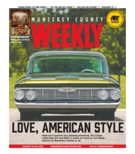 6 MONTEREY COUNTY WEEKLY AUGUST 14-20, 2025 www.montereycountynow.com AUGUST 14-20, 2025 • ISSUE #1933 • ESTABLISHED IN 1988 Susan Lambert (Sony a7RV with a 200-600mm lens) A day-old black oystercatcher is brooded by an adult in Pebble Beach. Black Oystercatcher Monitoring Project volunteers get to see these chicks in their first moments. (Learn about volunteering via the P.G. Museum of Natural History or Monterey Audubon Society.) MONTEREY COUNTY PHOTO OF THE WEEK Send Etc. submissions to etcphoto@montereycountynow.com; please include caption and camera info. On the cover: The 1961 Chevrolet Impala Bubble Top known as “Dirty Martini” is one of the high-end modified vehicles that are gaining notice—and acceptance—in a collector culture that had put more emphasis on authenticity. It will cross the Mecum Auctions block in Monterey. Cover photo: Courtesy of Mecum Auctions, Inc. etc. Copyright © 2025 by Milestone Communications Inc. 668 Williams Ave., Seaside, California 93955 (telephone 831-394-5656). All rights reserved. Monterey County Weekly, the Best of Monterey County and the Best of Monterey Bay are registered trademarks. No person, without prior permission from the publisher, may take more than one copy of each issue. Additional copies and back issues may be purchased for $1, plus postage. Mailed subscriptions: $300 yearly, prepaid. The Weekly is an adjudicated newspaper of Monterey County, court decree M21137. The Weekly assumes no responsibility for unsolicited materials. Visit our website at http://www.montereycountynow. com. Audited by CVC. FOUNDER & CEO Bradley Zeve bradley@montereycountynow.com (x103) PUBLISHER Erik Cushman erik@montereycountynow.com (x125) EDITORIAL EDITOR Sara Rubin sara@montereycountynow.com (x120) ASSOCIATE EDITOR Erik Chalhoub ec@montereycountynow.com (x135) FEATURES EDITOR Dave Faries dfaries@montereycountynow.com (x110) STAFF WRITER Celia Jiménez celia@montereycountynow.com (x145) STAFF WRITER Pam Marino pam@montereycountynow.com (x106) STAFF WRITER Agata Pope¸da (x138) aga@montereycountynow.com STAFF WRITER Katie Rodriguez (California Local News Fellow) katie@montereycountynow.com (x102) STAFF WRITER David Schmalz david@montereycountynow.com (x104) STAFF PHOTOGRAPHER Daniel Dreifuss daniel@montereycountynow.com (x140) DIGITAL PRODUCER Sloan Campi sloan@montereycountynow.com (x105) CONTRIBUTORS Nik Blaskovich, Rob Brezsny, Robert Daniels, Tonia Eaton, Paul Fried, Jesse Herwitz, Jacqueline Weixel, Paul Wilner CARTOONS Rob Rogers, Tom Tomorrow PRODUCTION ART DIRECTOR/PRODUCTION MANAGER Karen Loutzenheiser karen@montereycountynow.com (x108) GRAPHIC DESIGNER Kevin Jewell kevinj@montereycountynow.com (x114) GRAPHIC DESIGNER Alexis Estrada alexis@montereycountynow.com (x114) GRAPHIC DESIGNER Lani Headley lani@montereycountynow.com (x114) SALES SENIOR SALES EXECUTIVE Diane Glim diane@montereycountynow.com (x124) SENIOR SALES EXECUTIVE George Kassal george@montereycountynow.com (x122) SENIOR SALES EXECUTIVE Keith Bruecker keith@montereycountynow.com (x118) CLASSIFIEDS BUSINESS DEVELOPMENT DIRECTOR Keely Richter keely@montereycountynow.com (x123) DIGITAL DIRECTOR OF DIGITAL MEDIA Kevin Smith kevin@montereycountynow.com (x119) DISTRIBUTION DISTRIBUTION AT Arts Co. atartsco@gmail.com DISTRIBUTION CONTROL Harry Neal BUSINESS/FRONT OFFICE OFFICE MANAGER Linda Maceira linda@montereycountynow.com (x101) BOOKKEEPING Rochelle Trawick 668 Williams Ave., Seaside, CA 93955 831-394-5656, (FAX) 831-394-2909 www.montereycountynow.com We’d love to hear from you. Send us your tips at tipline.montereycountynow.com. Subscribe to the newsletter @ montereycountynow.com/subscribe Go to montereycountynow.com We Deliver… NEWS • ARTS • ENTERTAINMENT FOOD • DRINK • CALENDAR Local news everyday