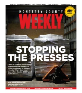 JANUARY 29-FEBRUARY 4, 2026 MONTEREYCOUNTYNOW.COM LOCAL & INDEPENDENT MYSTERY BEHIND THE BRUSH 5 | LAST CALL AT SADE’S 11 | DOC’S FOLLIES 27 | CHOPPED UP 34 FIRST PLACE GENERAL EXCELLENCE • 2025 CA JOURNALISM AWARDS • Years of cutbacks by corporate owners have decimated the daily newspapers in Monterey County. Where does local journalism stand in 2026? p. 14 By Erik Chalhoub STOPPING THE PRESSES PLUS, Spanish-language news media is on the brink. p. 18 By Celia Jiménez